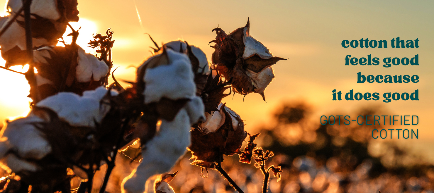 GOTS is the leading global standard for organic textiles. By choosing cotton from GOTS-certified suppliers, we ensure clean cotton, ethical production, better quality for you, and products that are gentler on your skin, and the planet.