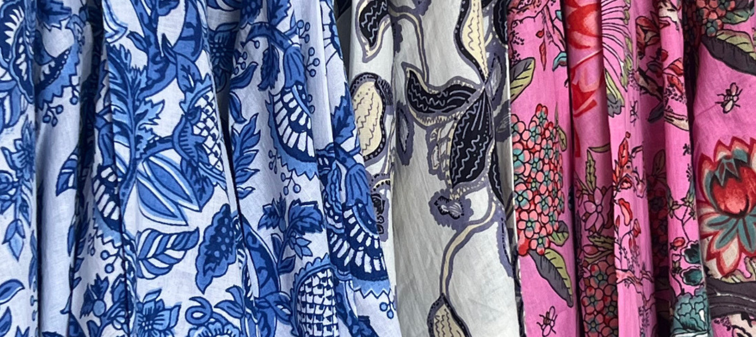 Fabrics are printed using hand block printing, a centuries-old technique where each motif is carved into a wooden block, then pressed onto the fabric by hand, one color, one layer at a time. After printing, the fabric is washed, dried, and cut before being sewn into garments. Each step from printing to stitching is done by hand, making every piece unique. It’s a process rooted in time, care, and the principles of slow fashion.