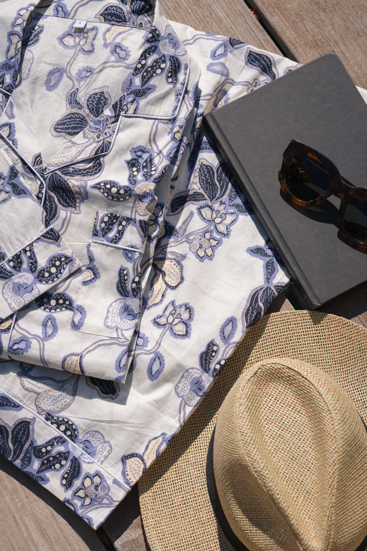 Our vibrant, 100% cotton pajamas are handcrafted using a traditional, and artisanal Indian technique. Each pattern and color is carefully selected and manually prepared, giving every piece its own unique character. With a loose fit and lightweight fabric, our pajamas are perfect for all seasons. The shirt can also double as a casual daytime top, paired with jeans or dressier pants.