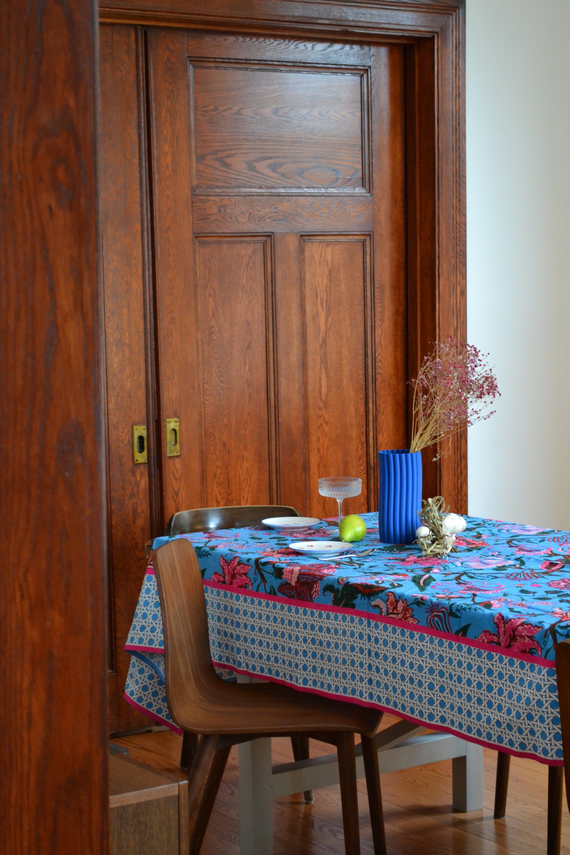 Add a touch of color and vitality to your table with these lovely 100% cotton tablecloths, printed and handmade using a traditional and artisanal Indian technique. Each pattern and color is carefully selected and manually prepared by artisans we collaborate with, giving each piece its own unique character. Small imperfections and color variations may appear, reflecting the artisanal work and adding to the authentic charm of tablecloth.