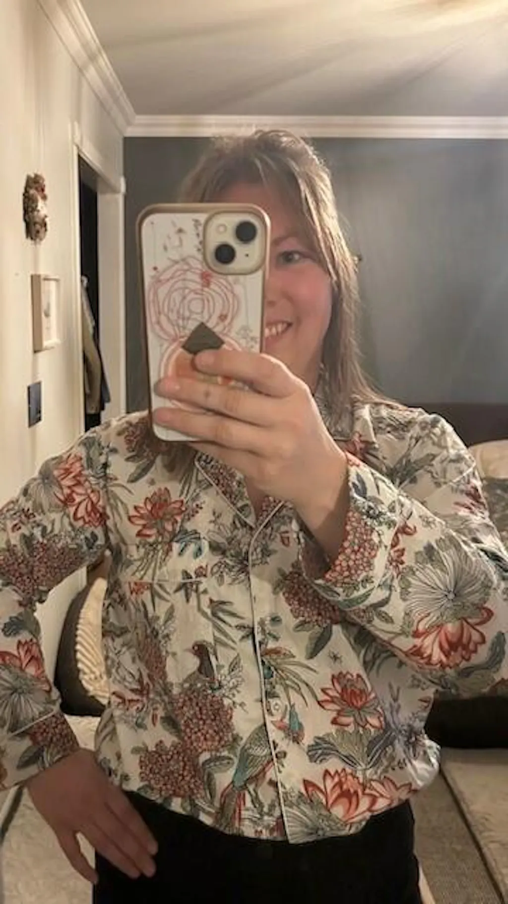 Magnifique tissu.Très qualitatif. Le pyjama tombe parfaitement au niveau des hanches et de la poitrine.